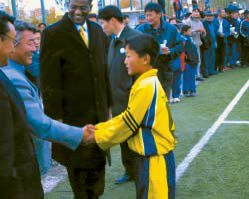 Just this month the PSMP! tournament took place in Israel. The world looks at Israel as the test case of peacebuilding. It was a great opportunity, and testimony to the PSMP! Coordinator, Mohammad Darawshe, who was able to bring 4 Arab teams and 4 Jewish teams to join together in the tournament. We had hoped the teams would be matched equally and that it would be a genuine model for peace. I think we were able to achieve that. The President of the Israeli Football Association attended the final, and was overjoyed with what he witnessed. The final match was a Jewish team, Maccabi Haifa against Sakhnin, an Arab team. Sakhnin won 3:1. The IFA'S President stayed to enjoy the post game celebrations, and promised to include the PSMP! tournament and its education in the IFA's 2005 program. He commented that PSMP! added an element to Israeli soccer that had been missing, but could now be included.