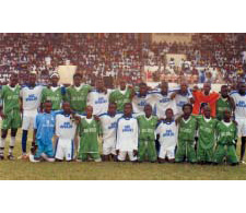 front of a full stadium in Senegal