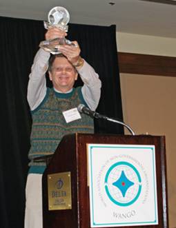 The 2007 WANGO Awards were presented in a format unique for a WANGO conference. Previous presentations at conferences were part of an “awards banquet.” The 2007 awards, held on Friday evening, were preceded by an Awards Reception, while the awards themselves were presented in a theatre style. Jean Rondon, WANGO’s Publications Director, served as Master of Ceremonies in the absence of Awards Chair Dr. Noel Brown, who was unavoidably stuck overseas when class=grame>a airline strike prevented his making the program in time. (The 2006 Awards, which were held independently of a conference, were presented in Spain in a similar manner, with a reception followed by the presentation of the awards in a theatre.)