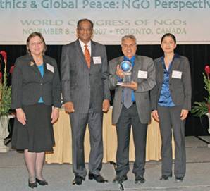 The 2007 awards presented were in the following categories: Environment, Humanitarian, Peace & Security, and Education, Media, and the Arts, as well as a presentation to an outstanding individual for the Universal peace Award. Before each presentation, a video was presented highlighting the work of the NGO.